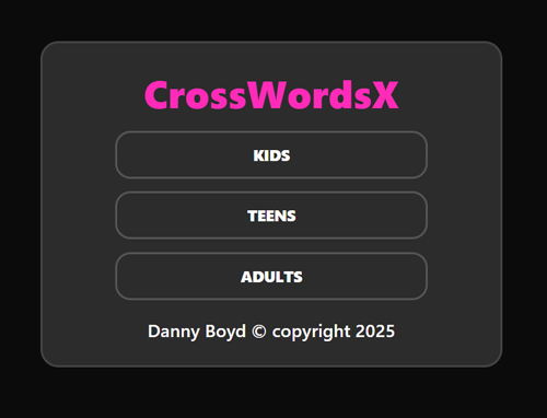 3 levels of play, from Kids, Teen or Adult in increasing difficulty.